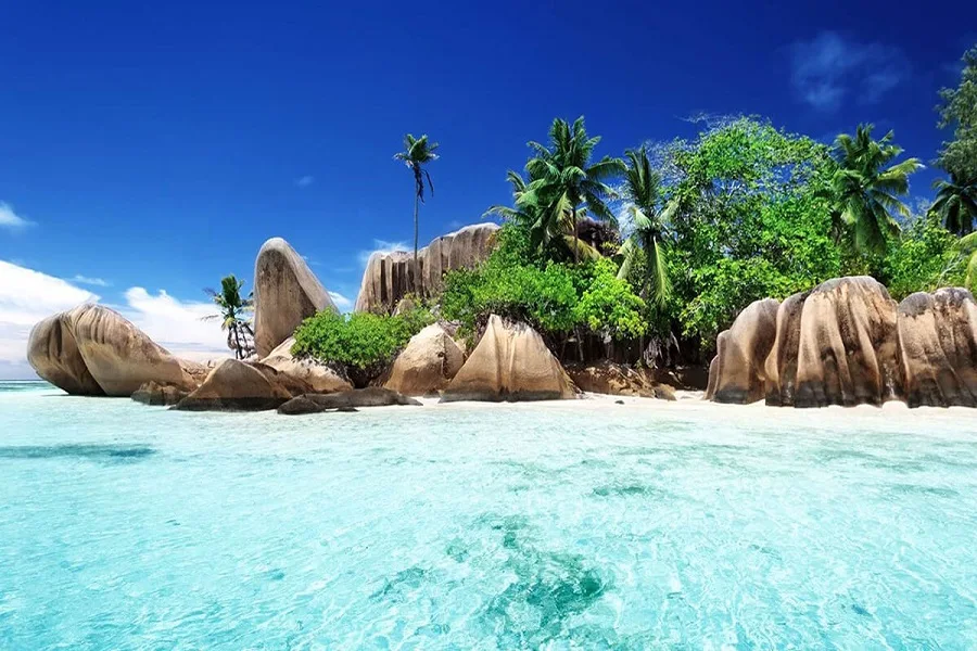 Seychelles is group of islands located in Indian Ocean, off Eastern Coast of Africa. The archipelago consists of 115 islands most of which are uninhabited. The largest and most populated islands are Mahé, Praslin, La Digue. Seychelles is known for its stunning natural beauty with Crystal Clear Waters, White Sand Beaches and Lush Green vegetation.